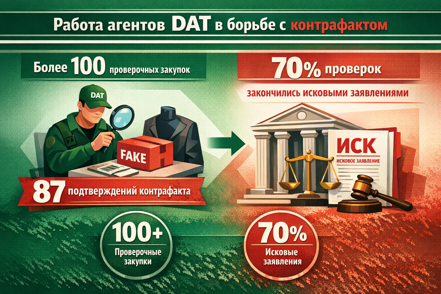 Таким образом, в 2025 DAT выстроил устойчивый «конвейер защиты бренда»: мы находим нарушение на рынке, фиксируем доказательства, переводим историю в правовую плоскость и сопровождаем её до исполнения. Это превращает проверочную закупку из разового действия в управляемый процесс, который даёт измеримый итог по защите товаров от подделок.